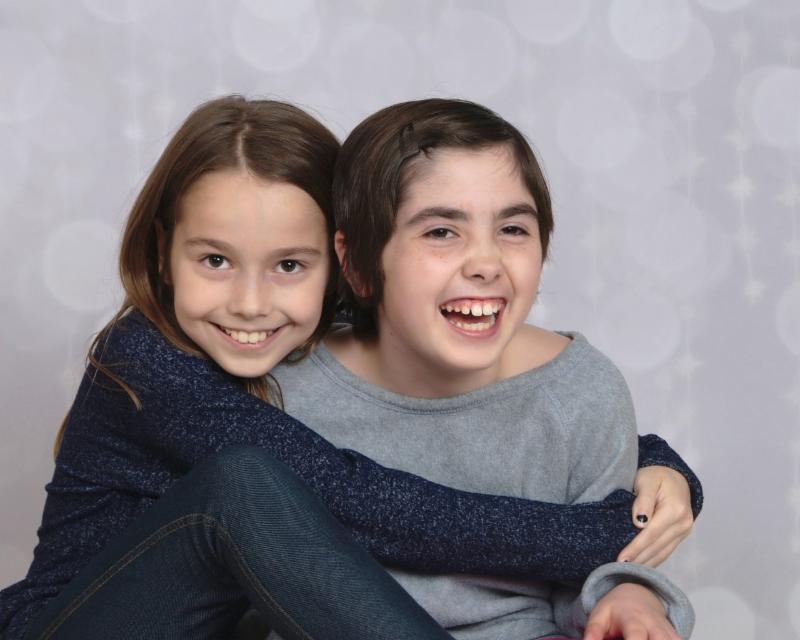 14-year-old twins Betty (l) and Audrey (r) love to sing, dance, and play music together. Betty is dedicated to raising money for Audrey and all the others who are battling BPAN.